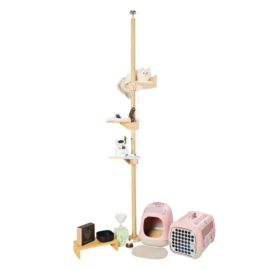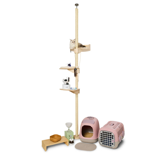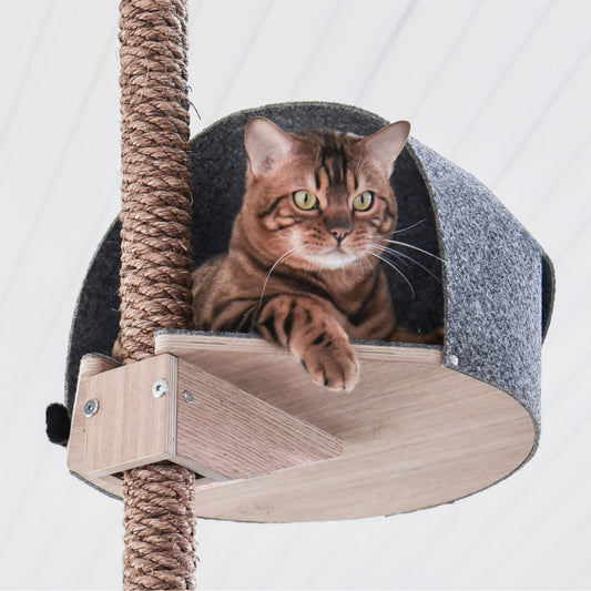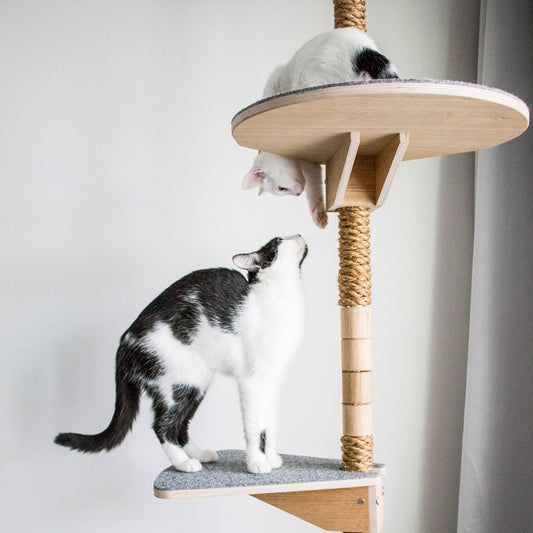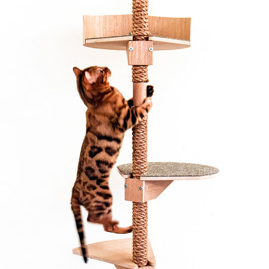You will need a pole and 1-5 levels for your tailor made Kissapuu cat tree. The levels/platforms can all be the same or different. You can order a platform with or without felt.