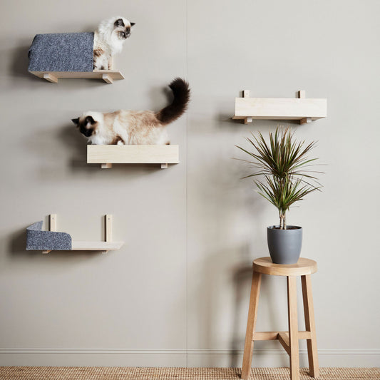 Licence to wall climbing! Our selection includes cat wall shelves and ladders for wall climbing especially in small or bigger spaces. Design your unique parkour race for you cat!