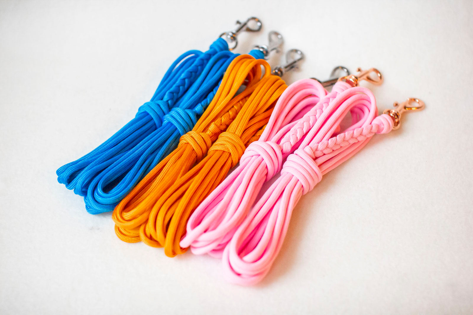 Made by hand in Finland. Leashes are made of durable and high-quality paracord. The ends of the leash are made with beautiful plaiting and a tied knot.