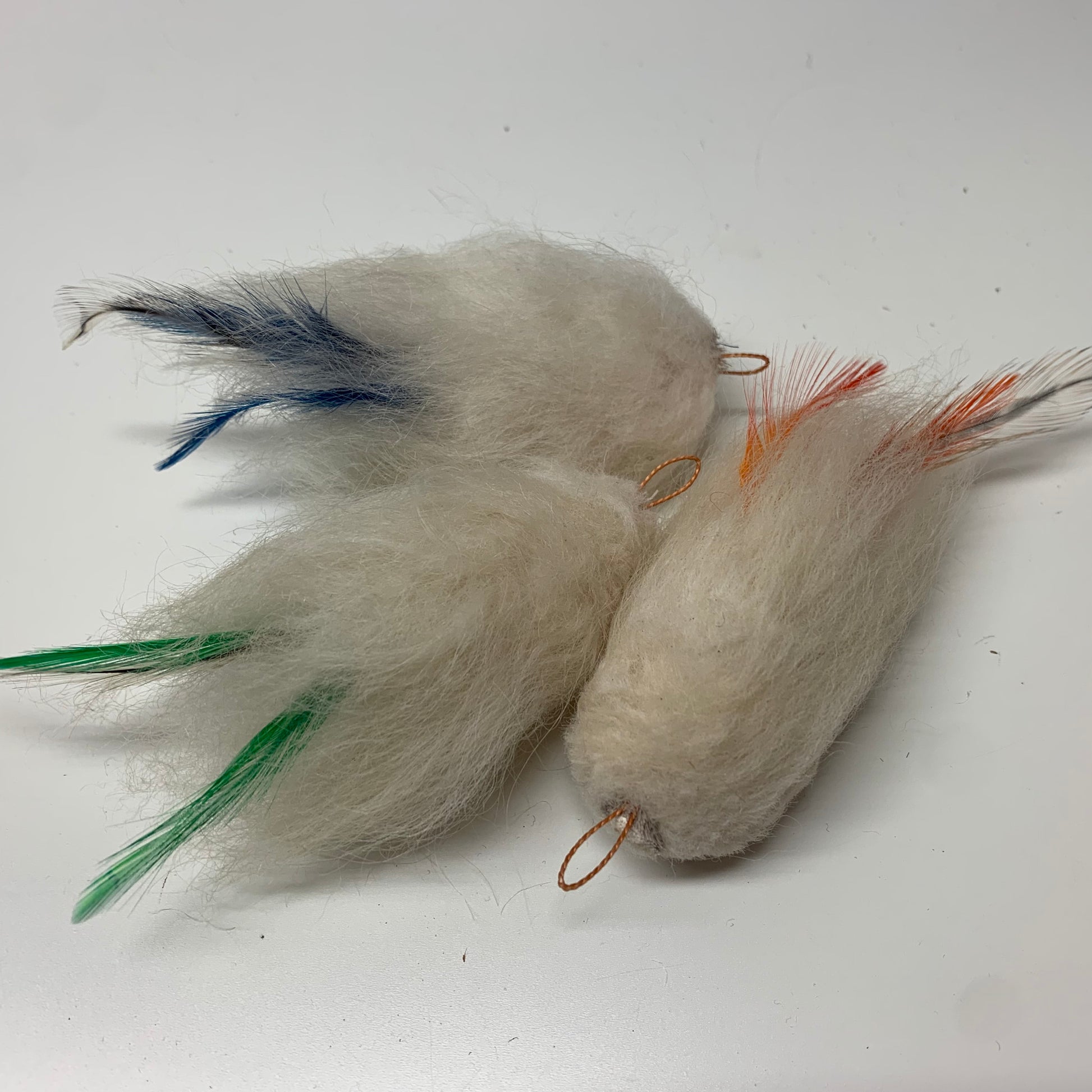 Nämä lampaankarvasta ja -nahasta tehdyt kissan lelut tulevat Keniasta, Afrikasta. Lelut myydään settinä, jossa on kolme lintua sulkineen. Joissakin leluissa on silmukka, jolla voit kiinnittää lelun jo aiemmin hankkimaasi lelukeppiin. Näistä leluista on iloa kissan itsenäiseen tai yhteiseen leikkiin omistajan kanssa!