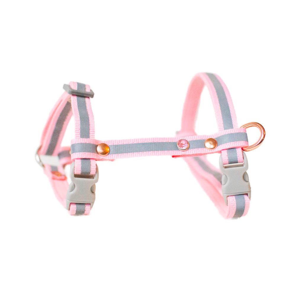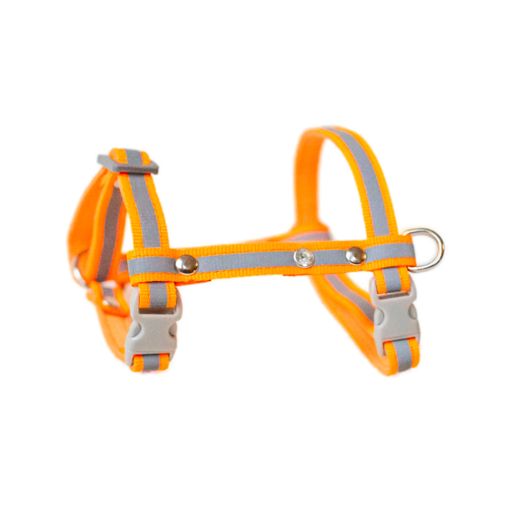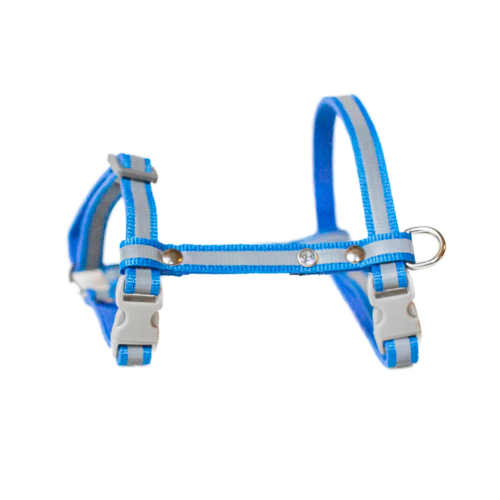 Valjaissa on heijastava pinta, mikä helpottaa näkyvistä pimeässä. Lisävarusteena voit hankkia valjaisiin kiinnitettävän vilkkuvan turvavalon. Tarvitset varmaan myös talutushihnan?